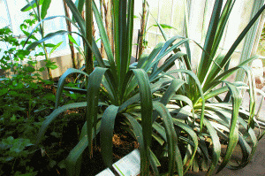 zeigt zwei Exemplare der Faserpflanze "Agave Sisalana"